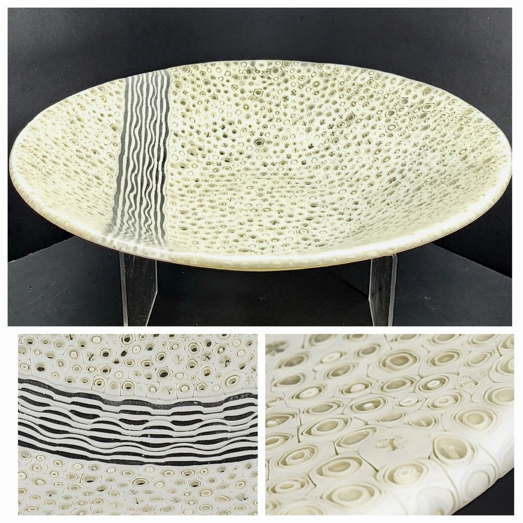 Design includes Hand Pulled Murrine and Displacement Technique. Murrine created in my studio. Weighs approximately 3.25 lbs, 14.5"
